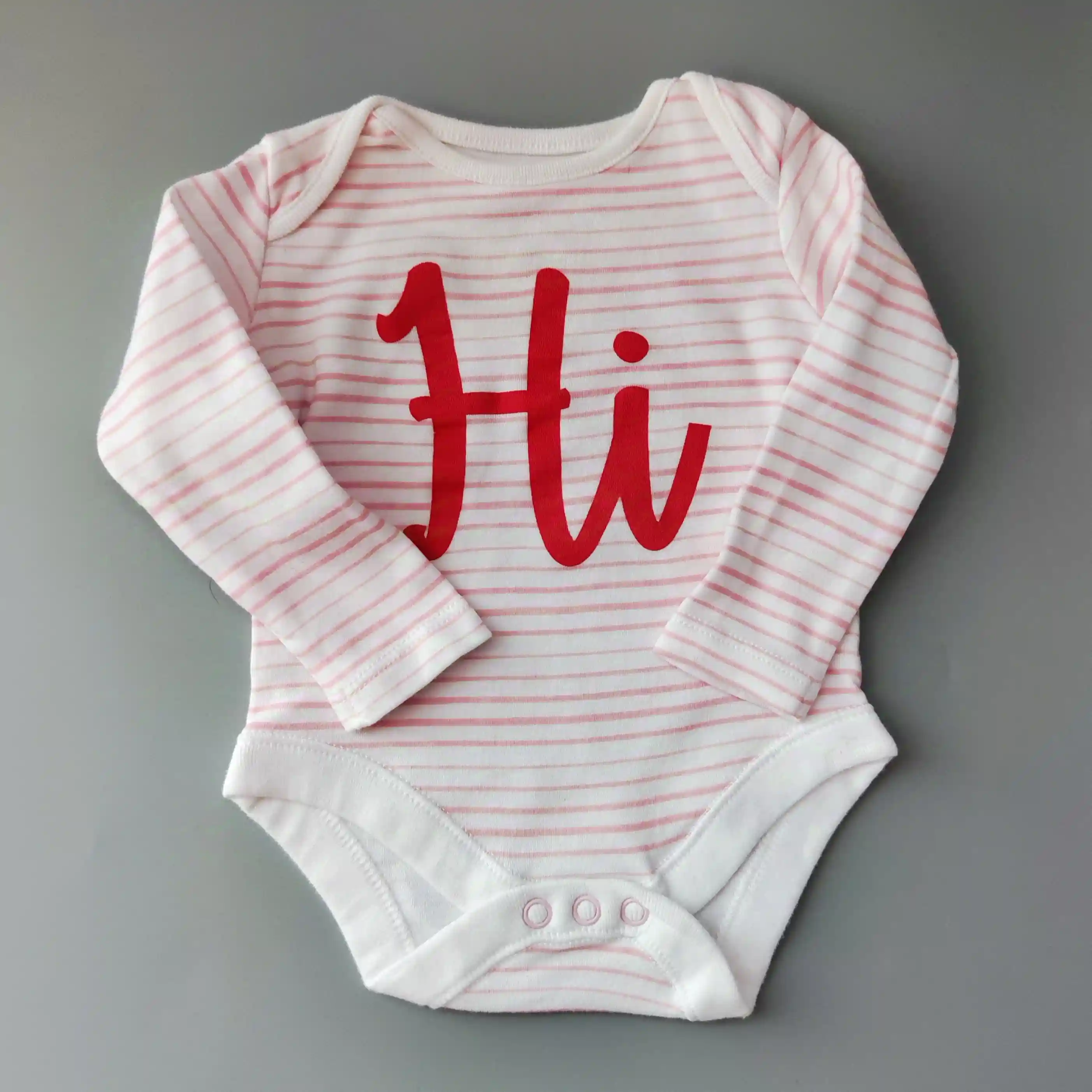 Body F&F vel. 62 růžovobílé proužkované s nápisem