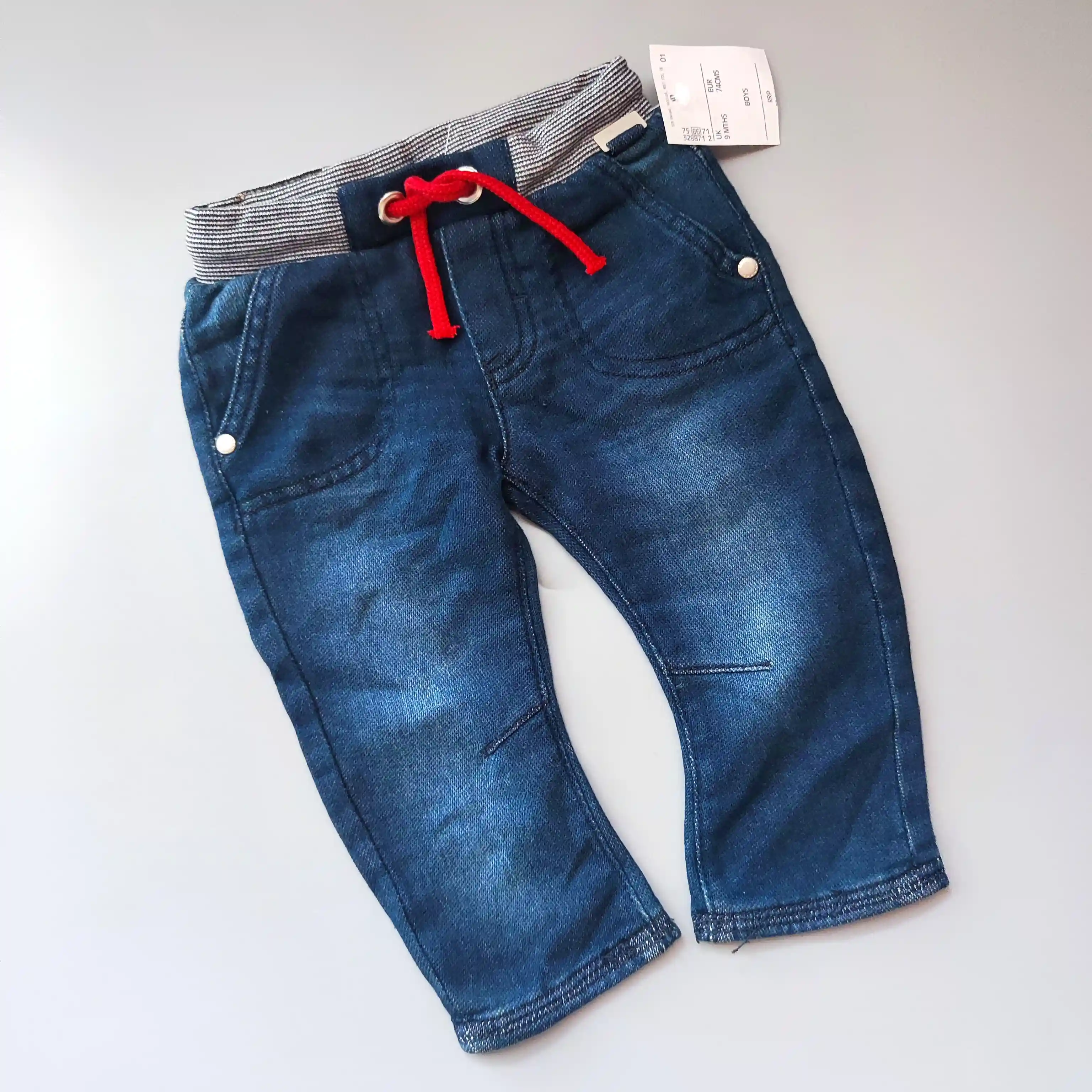 Džíny jogger Kanz vel. 74 modré s červenou šňůrkou v paseSkladem 189 Kč