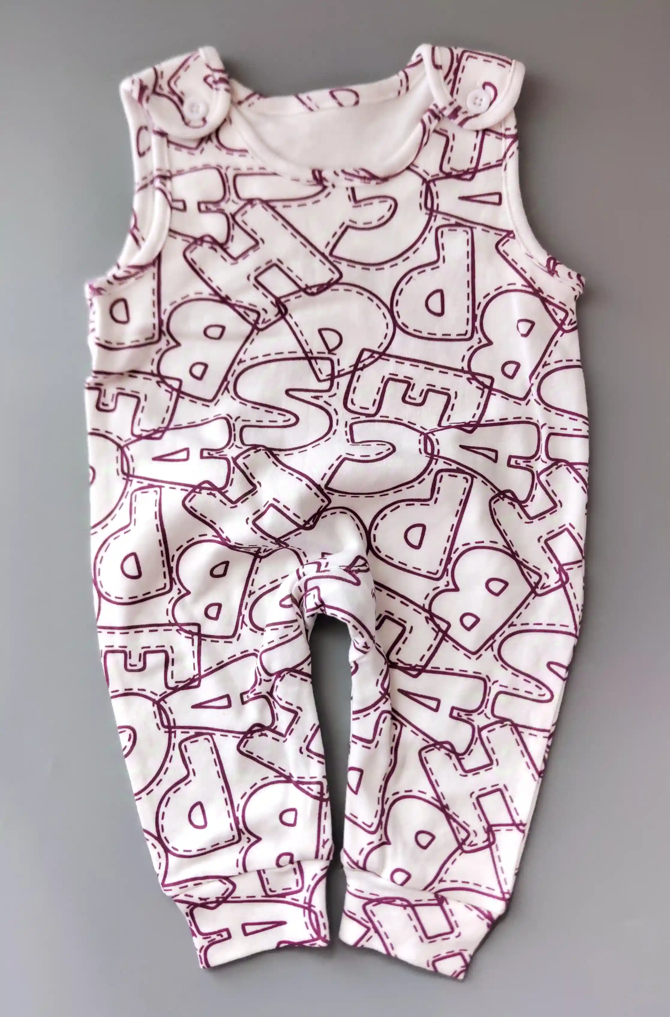 • Kojenecký overal bez rukávů vel. 68 bílý s písmeny