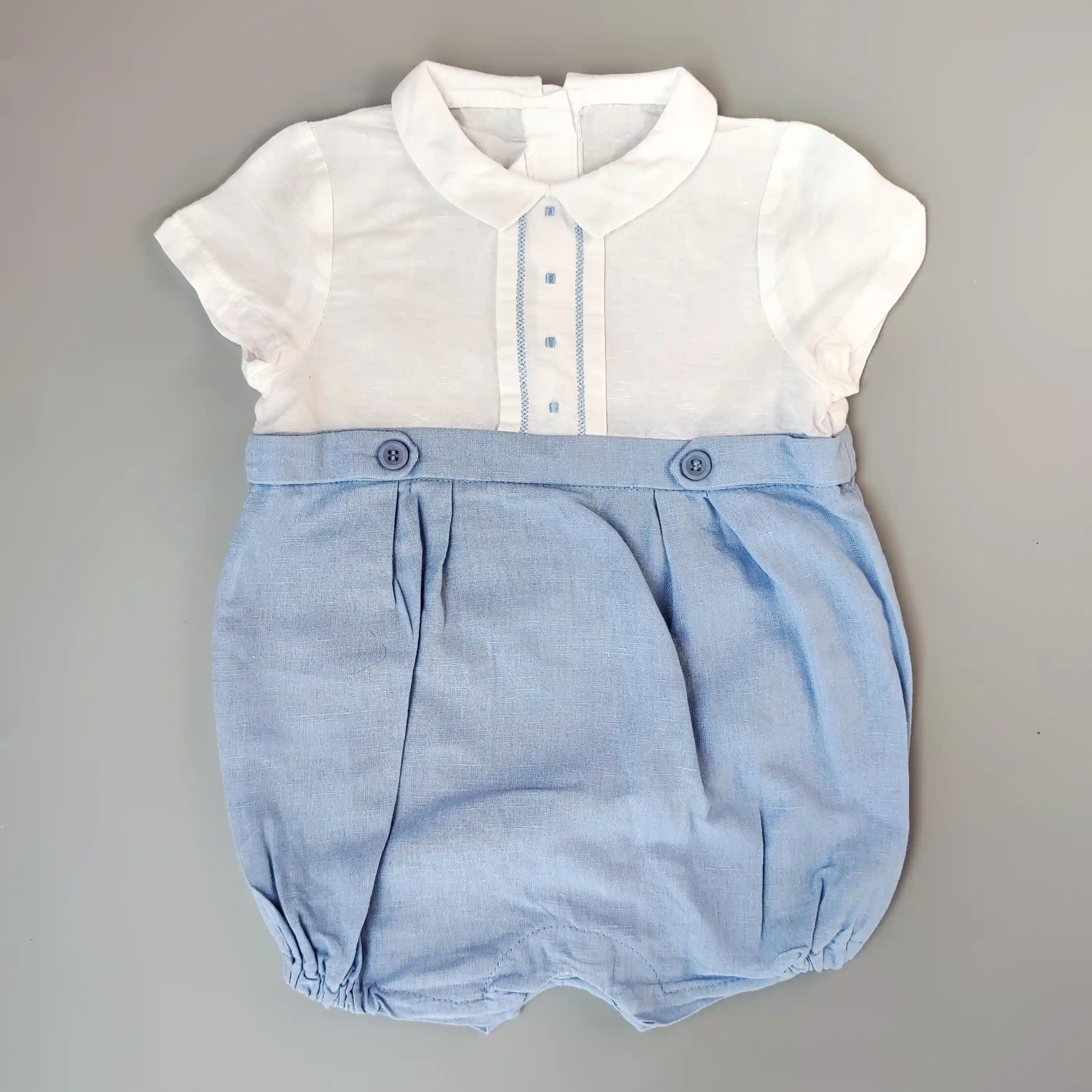 Lněný letní overal s límečkem Mayoral vel. 74 bílo modrý