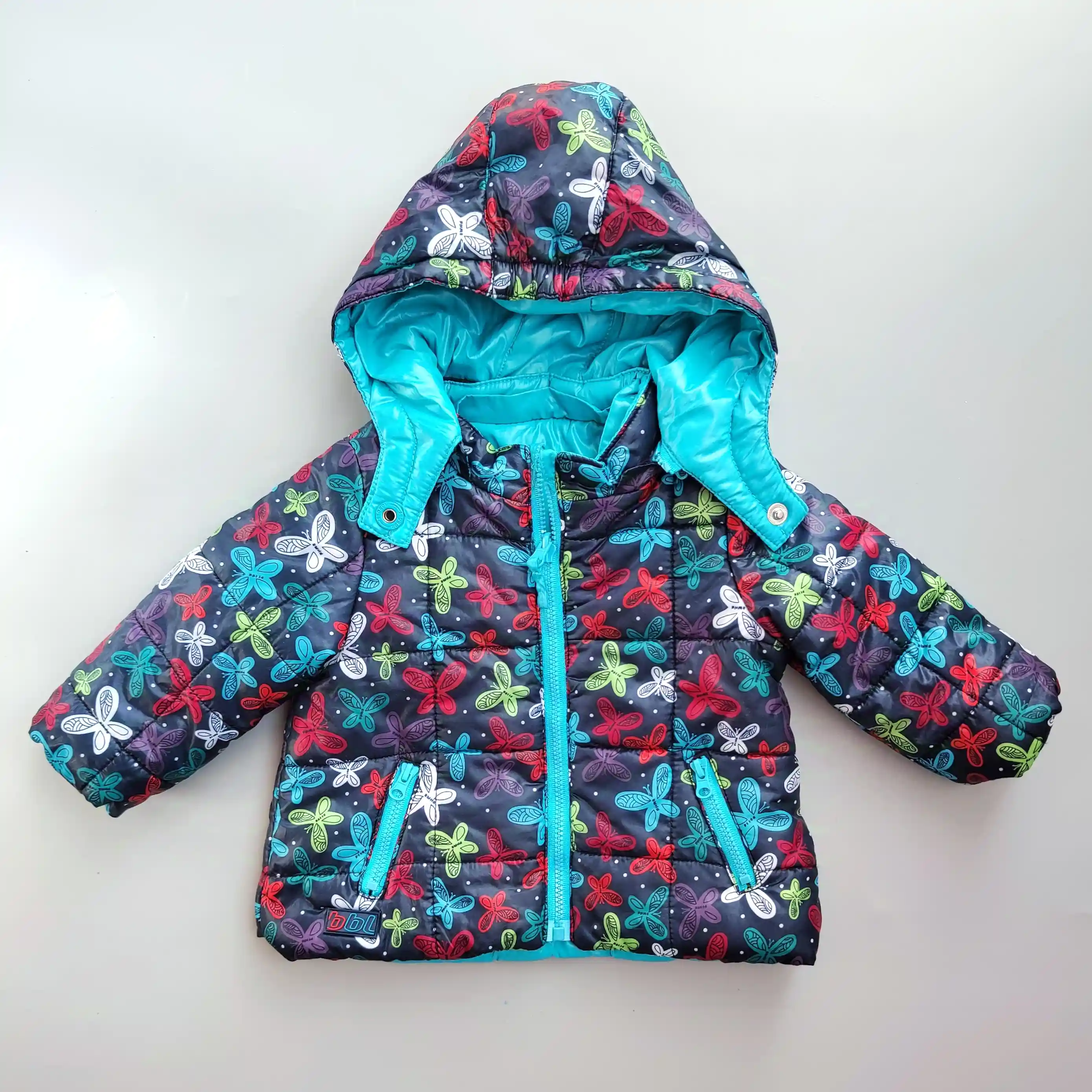 Oboustranná bunda Bóboli vel. 62 modrá s motýlkySkladem 1149 Kč