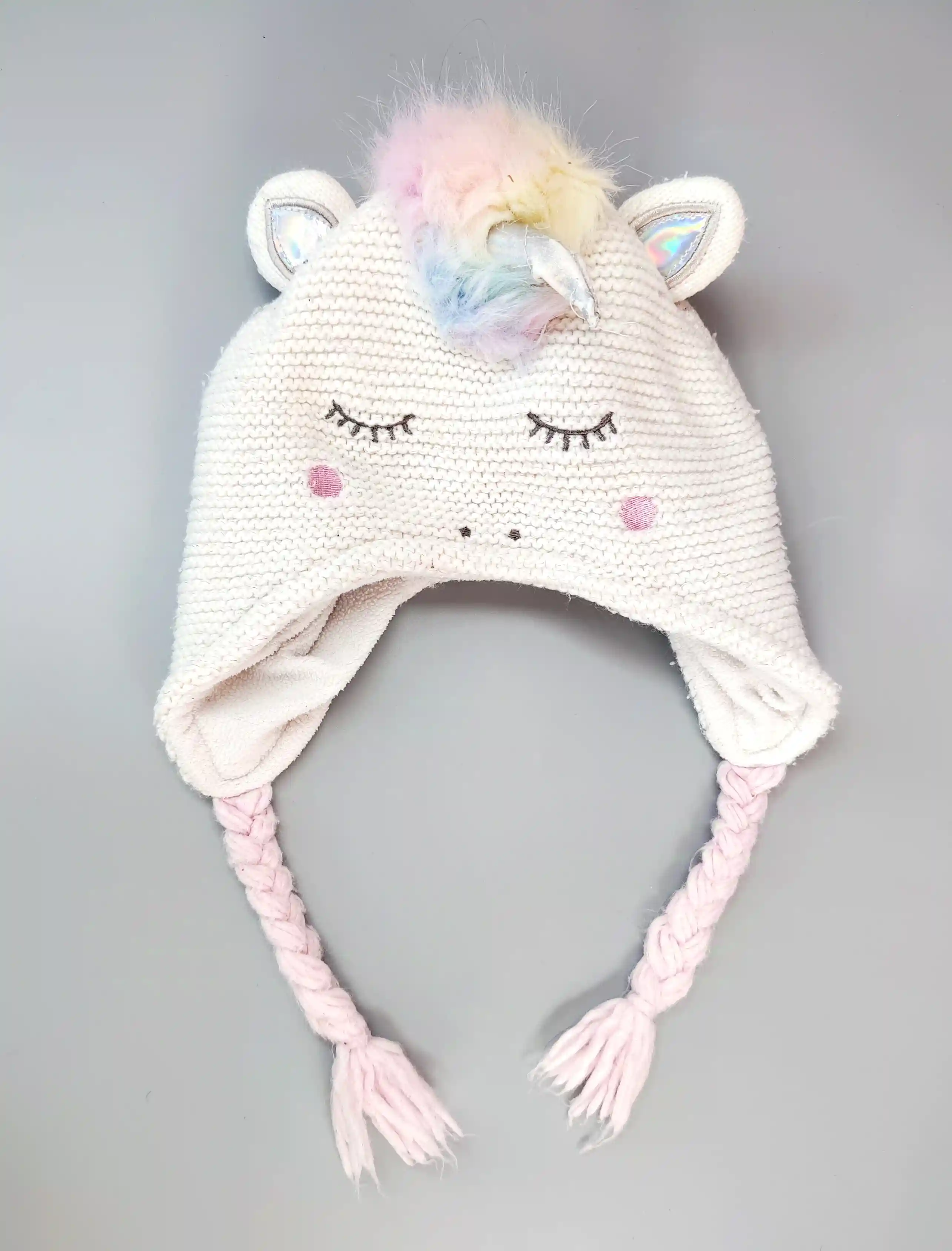 Pletená zimní čepice Primark jednorožec s copánky