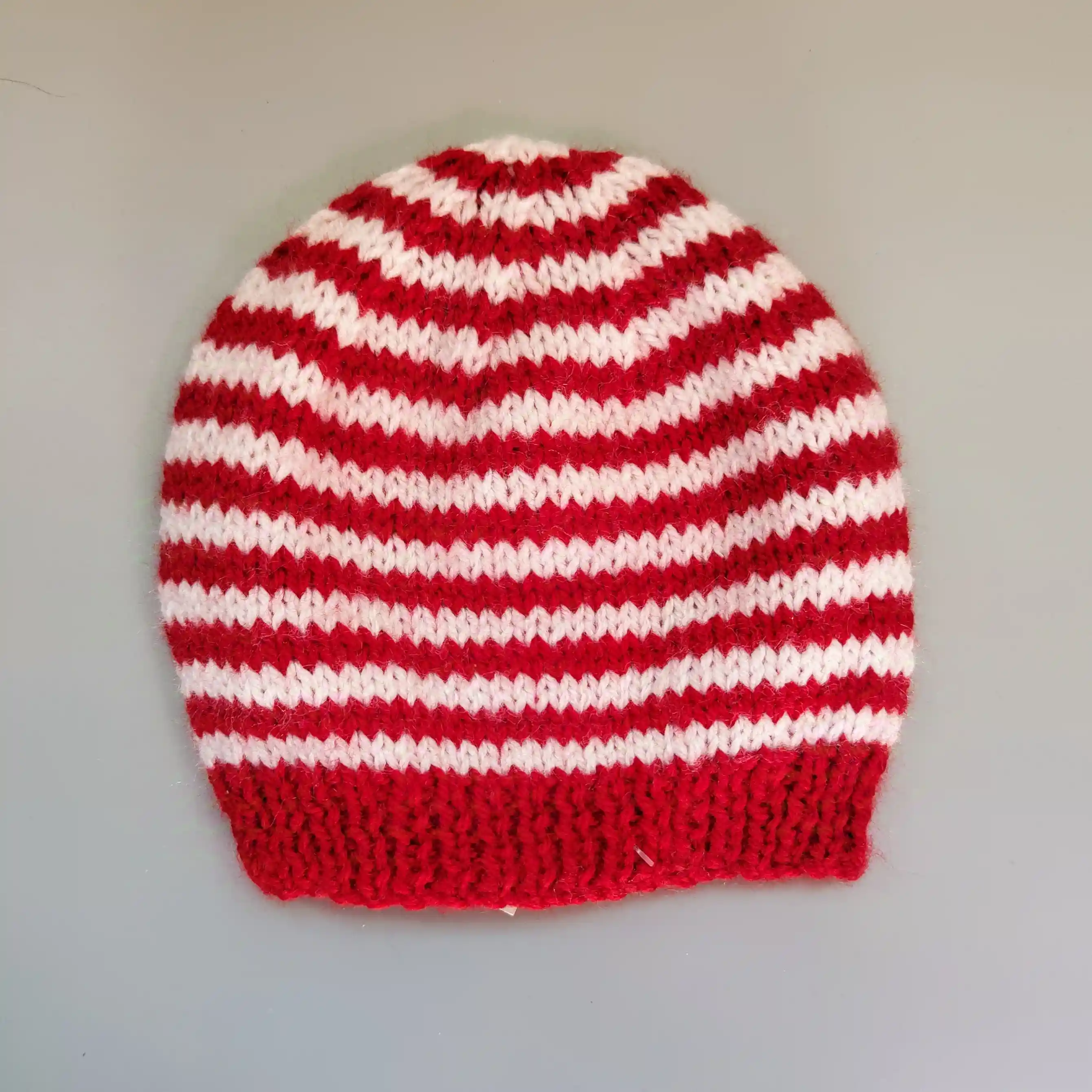Pruhovaná červenobílá pletená čepička