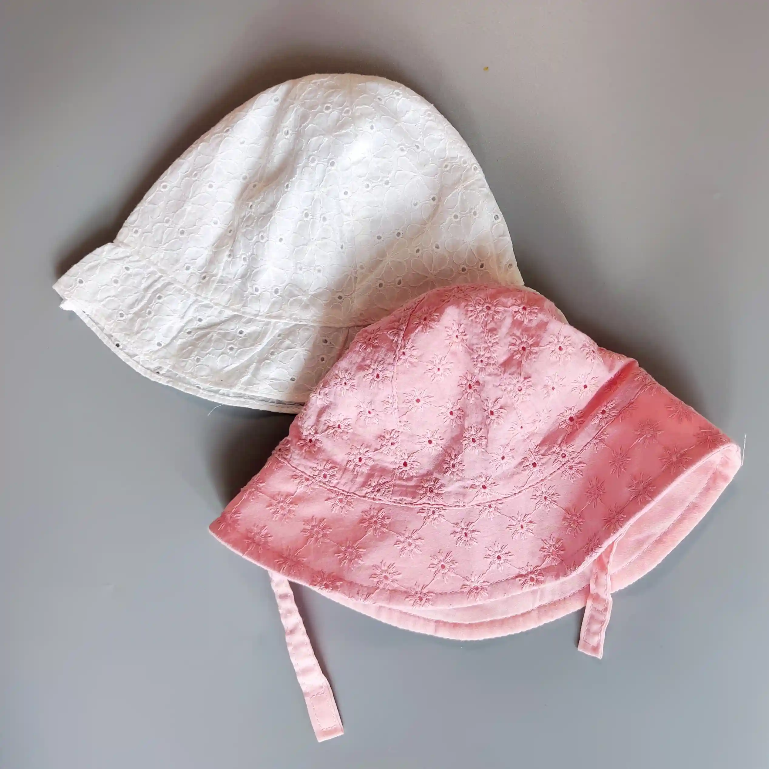 Set dvou bavlněných krajkových kloboučků vel. 62 bílý a růžový