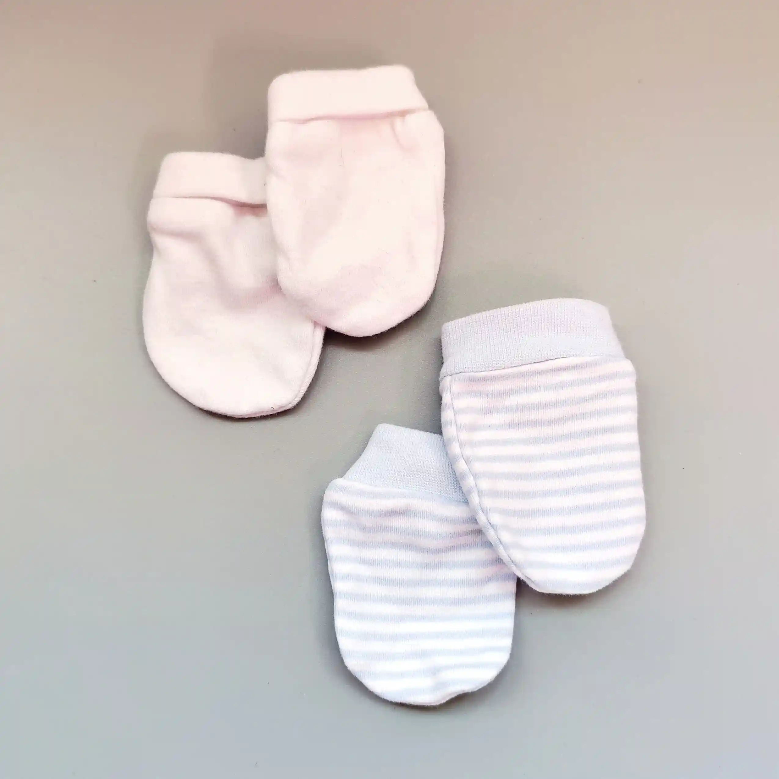 Set dvou bavlněných rukaviček bílé a modrobílé pruhované