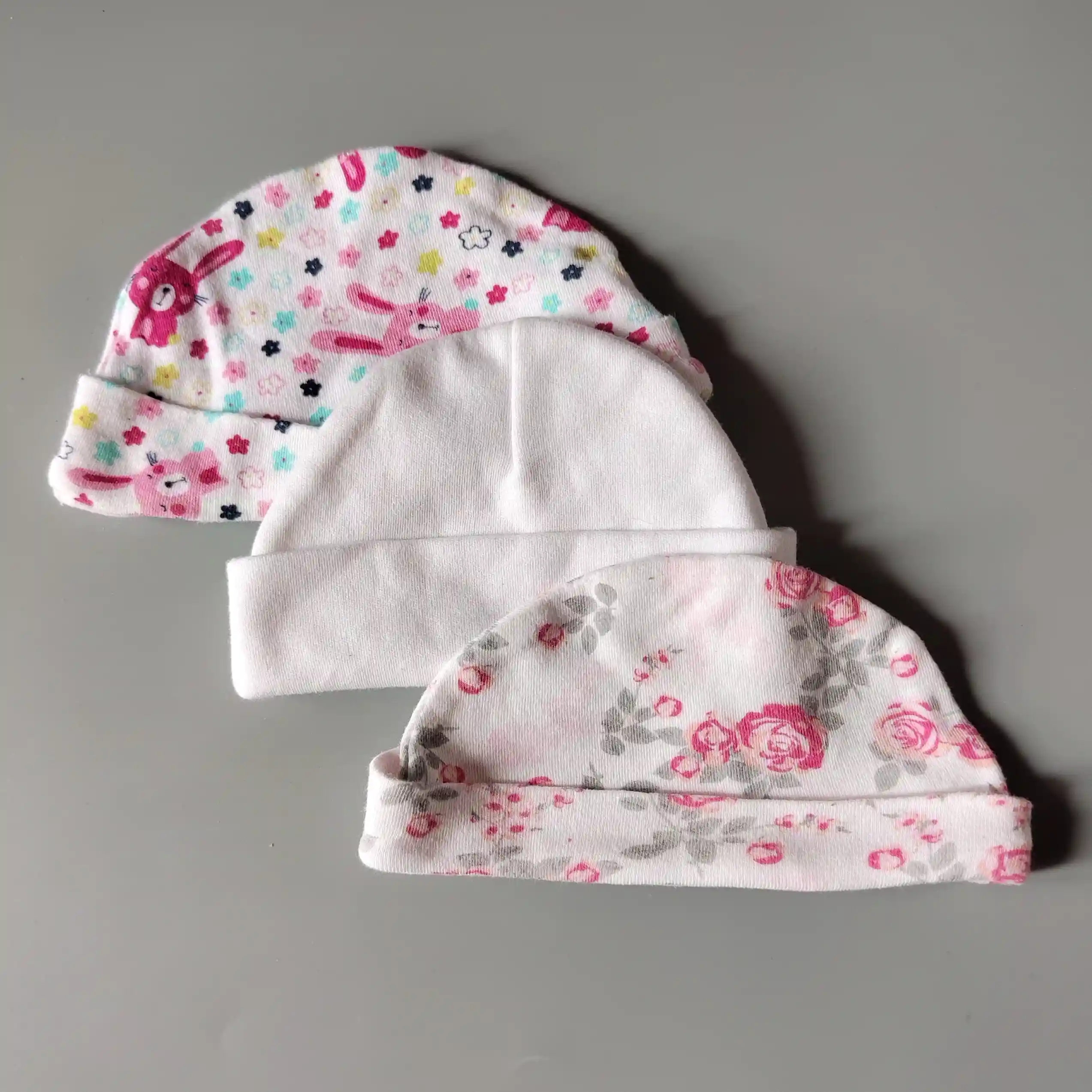Set tří Newborn čepiček pro holčičkuSkladem 119 Kč