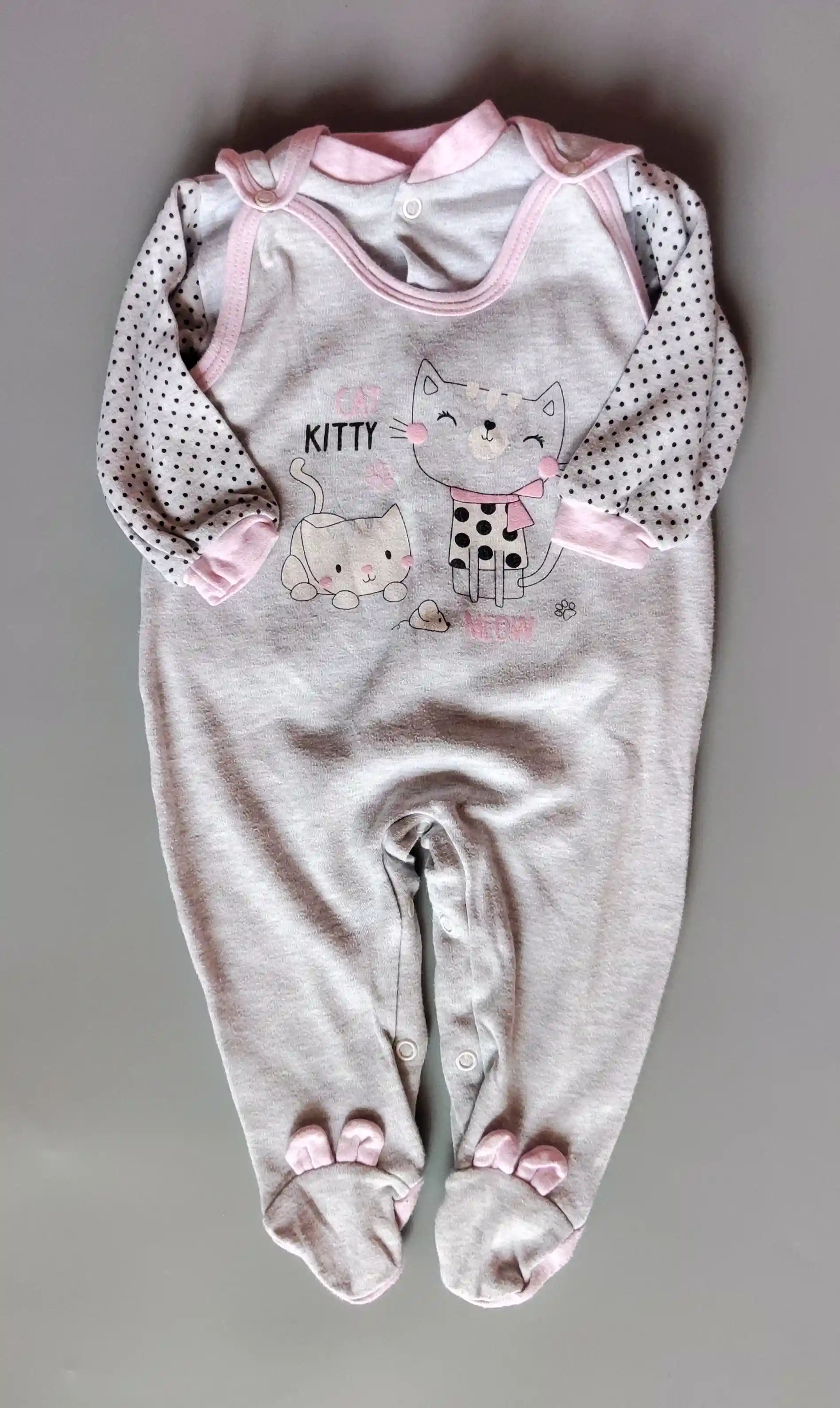 Souprava Lafel vel. 74 šedé dupačky s kočičkou a kabátekSkladem 169 Kč