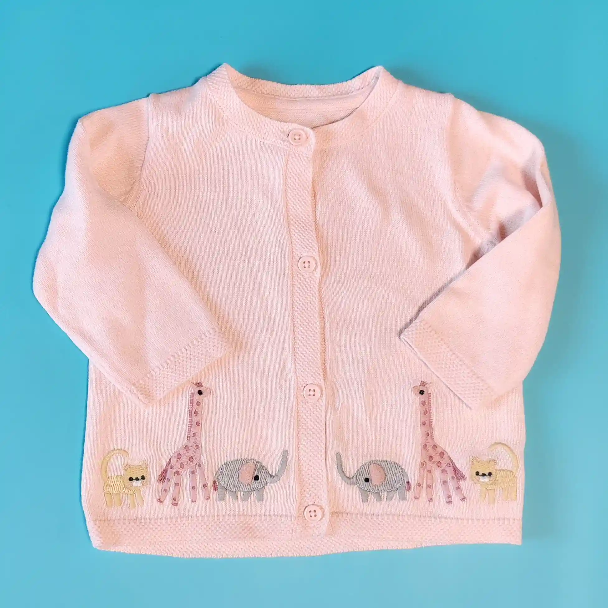 Tenký svetr Mothercare vel. 62 růžový propínací se zvířátkySkladem 159 Kč