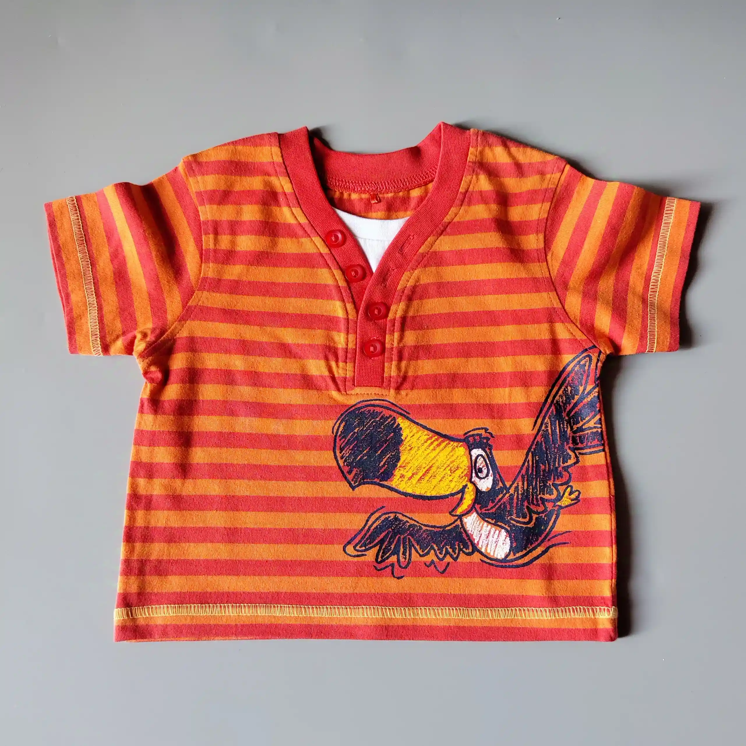 Tričko s krátkým rukávem George vel. 74 oranžové pruhované s tukanem
